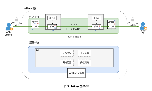 Istio的安全架構,如圖3所示。