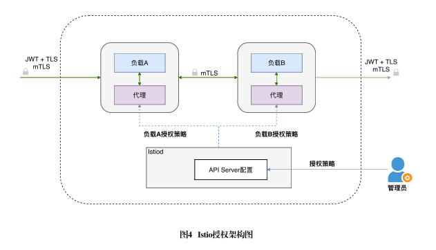 如圖4所示,Istio授權流程可以歸納總結為以下內容: