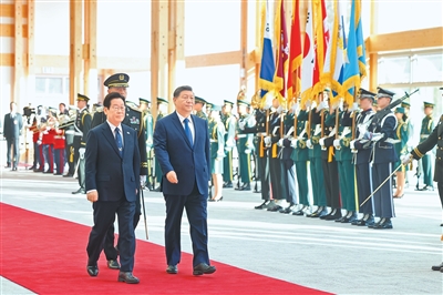 11月的慶州,秋意正濃。習近平乘車抵達,韓國禮儀隊隆重歡迎。
